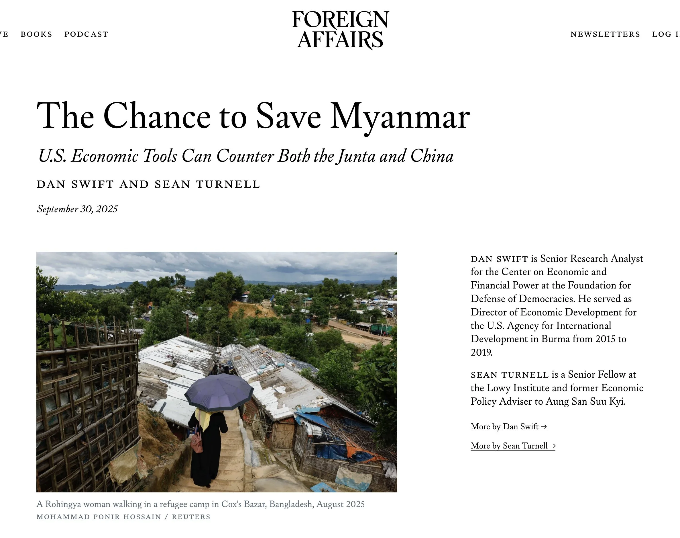 October 07, 2025 Dan in Foreign Affairs October 07, 2025/ Tracy Swift Here’s a new piece from Dan about Myanmar From Foreign Affairs magazine
